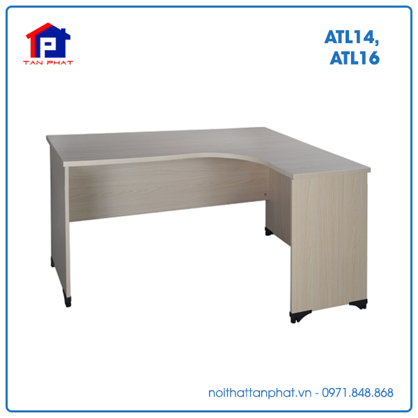 Bàn làm việc Hòa Phát ATL14K, ATL16K có thiết kế cùng kiểu dáng chữ L chỉ khác nhau kích thước 1m4, 1m6 rộng rãi. Bàn bàn bằng gỗ công nghiệp phủ Melamine.