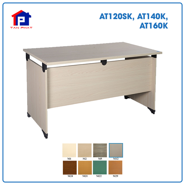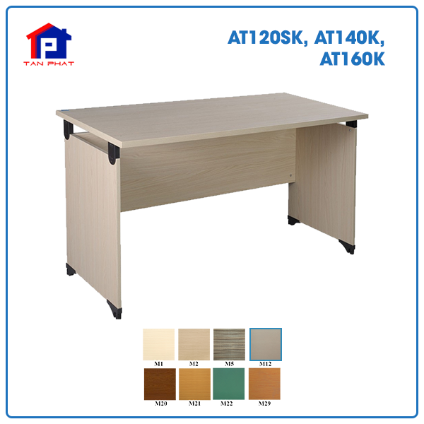 Bàn làm việc Hòa Phát AT120SK, AT120K, AT140SK, AT140K, AT160K cùng kiểu dáng, chỉ khác nhau kích thước. Là mẫu bàn gỗ thiết kế đơn giản, giá rẻ phù hợp với doanh nghiệp nhỏ hoặc công ty khởi nghiệp. Bảo hành 12 tháng.