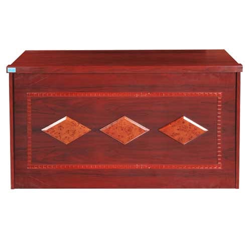 - Yếm bàn (hậu bàn) có trang trí phào gỗ tự nhiên ốp nổi hình chữ nhật, bên trong có 3 hình quả trám nối dán giấy khác màu.