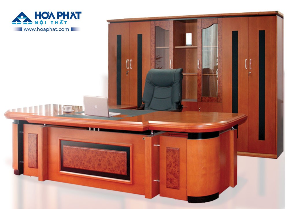 - Bàn giám đốc Hòa Phát hình chữ nhật lượn cong.