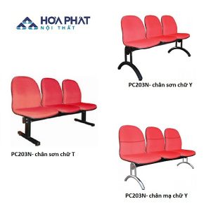 Ghế phòng chờ Hòa Phát PC202N, PC203N, PC204N có kết cấu vững chắc kiểu dáng hiện đại với thiết kế mặt ngồi và tựa lưng đệm mút bọc vải nỉ êm ái khi ngồi mang lại cảm giác thư thái, thoải mái. Phần chân ghế và khung là ống thép vuông sơn tĩnh điện có độ bền cao không hoen rỉ. Ghế có màu đỏ nổi bật tôn thêm vẻ đẹp cho khu vực phòng chờ.