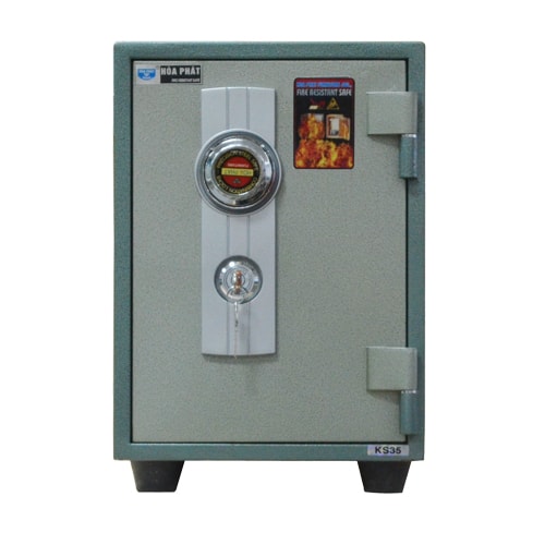 Két sắt Hòa Phát KS35D có kiểu dáng hiện đại, kết cấu vững chắc. Két có khả năng “chống chọi” với ngọn lửa trực tiếp mà không làm hư hại đồ đạc giấy tờ bên trong. Két sử dụng 2 loại khóa 1 khóa chìa và 1 khóa mã. Với khóa mã có thể thay đổi được mã theo ý muốn. Sản phẩm có kích thước nhỏ gọn giúp tiết kiệm không gian và thuận tiện trong việc thay đổi vị trí khi có nhu cầu chỉ cần 1 đến 2 người lớn là có thể bê vác được. Két thích hợp sử dụng tại gia đình hay khách sạn.