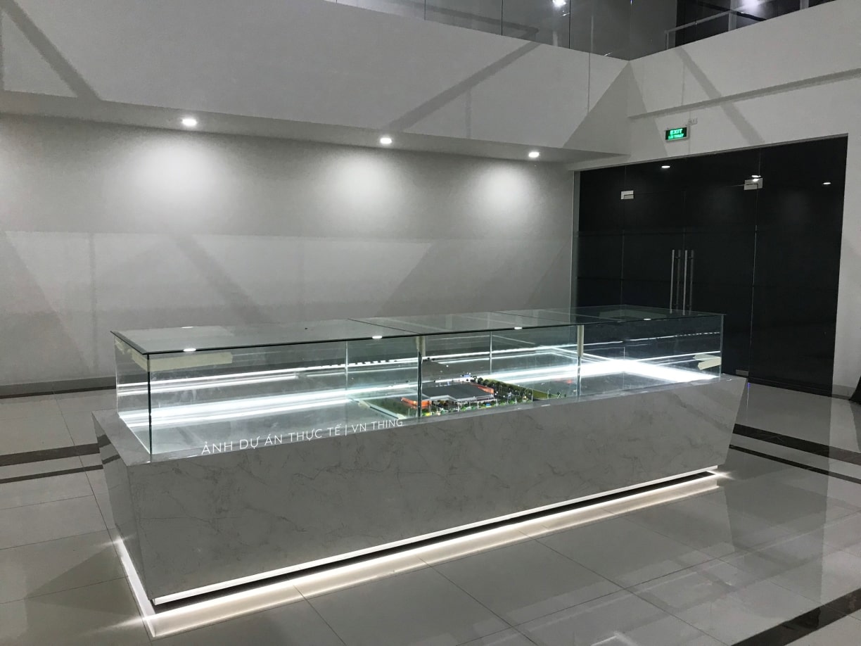 – Bên trên là kính cường lực 8ly trong suốt, bên trong gắn led viền.