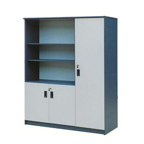 - Bên trái: chia làm 2 phần. Phần trên là 2 khoang cánh kính, bên trong có 2 đợt tủ cố định. Phần dưới là 2 khoang cánh mở bằng gỗ, có khóa. Bạn có thể sử dụng tủ kèm các mẫu bàn làm việc Hòa Phát màu ghi giúp mang đến sự đồng bộ về không gian.