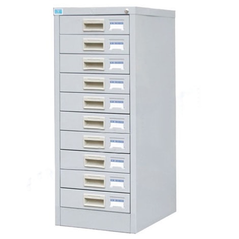 - Tủ file TU10F có 10 ngăn. Mỗi ngăn có 1 tay nắm ở giữa mặt ngăn kéo, chung 1 khoá giàn (khóa 10 ngăn).