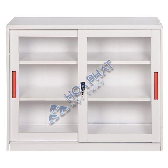 Kiểu dáng thiết kế và màu sắc: Tủ cao tầm trung dưới 1m, thiết kế kiểu tủ ghép, cánh kính lùa, có chốt khóa an toàn. TU118GD có 1 khoang, 2 đợt di động, chia thành 3 tầng để tài liệu, hồ sơ.