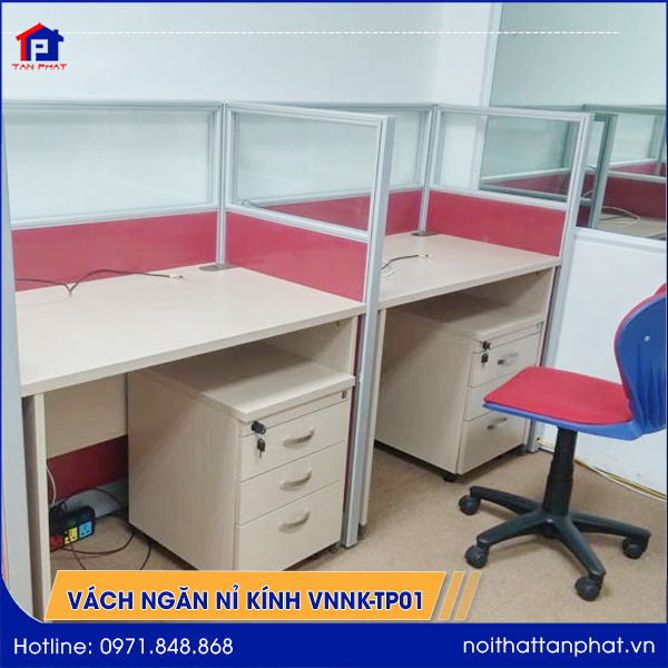 Vách ngăn văn phòng nỉ kính VNNK-TP01 sử dụng khung nhôm phun cát, bao gồm 2 vách: vách trên kính, vách dưới bọc nỉ, phân tách bằng khung nhôm. Vách ngăn nỉ kính VNNK-TP01 có kết cấu vững chắc, dễ dàng tháo lắp, tạo không gian làm việc theo module gọn gàng ngăn nắp với không gian làm việc riêng.