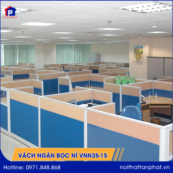 Vách ngăn văn phòng VNN35-15 là kiểu vách ngăn nỉ xếp tầng chia không gian làm việc thành nhiều phần khác nhau rất phù hợp với dân văn phòng. Đây là ưu điểm nổi bật của mẫu vách ngăn nỉ VNN35-15.