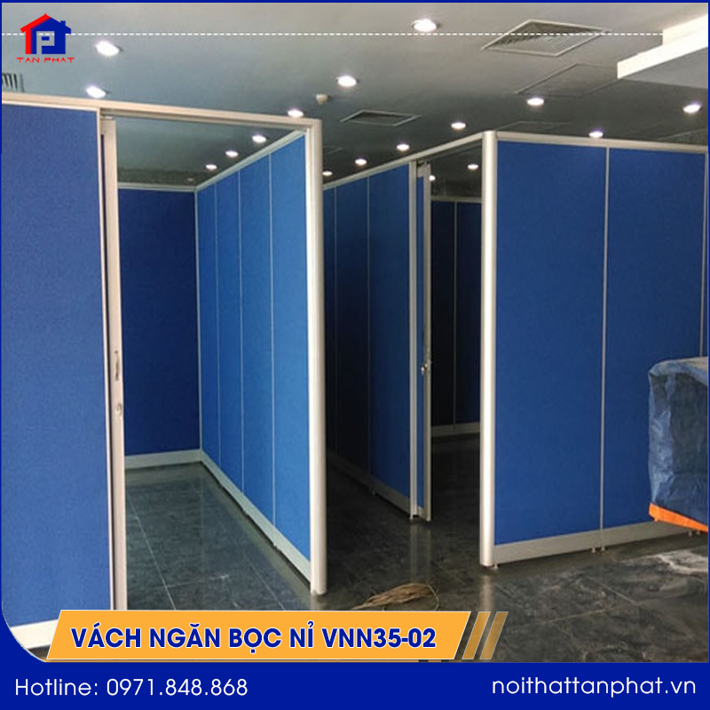 Vách ngăn nỉ văn phòng VNN35-02 là hệ vách dày 35mm được bọc vải nỉ màu xanh dương phù hợp với nhiều không gian văn phòng khác nhau.